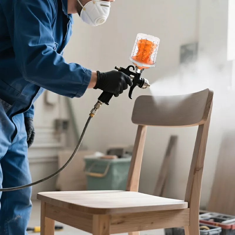La pintura de muebles requiere ajustes frecuentes al ángulo de la pistola de pulverización. El sistema de copa de pulverización desechable de Ayspat garantiza la rotación de 360 ° sin filtrar pintura, y la tapa de la copa se dobla para acomodar ángulos de pulverización variables. Es ideal para rociar pintura PU/NC en puertas de madera, gabinetes y muebles de madera maciza.