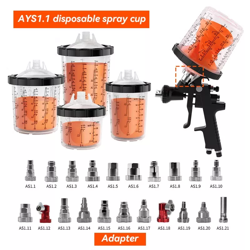 ElSistema de vaso de pintura desechable AYS1.1mejora la experiencia de pulverización manual, haciendo que mezclar y pulverizar sea un verdadero placer al tiempo que simplifica la limpieza de la pintura y
