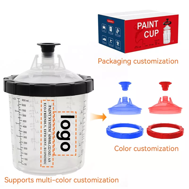 El sistema de vasos de pintura desechables 1.0 de 600 ML es el vaso estándar más versátil, adecuado para áreas donde se rocían 22 onzas líquidas o menos de material. AYSPAT ofrece una variedad de sistemas de vasos PPS con diferentes diseños para que usted elija y también se pueden personalizar para satisfacer sus necesidades: el vaso exterior se puede personalizar con el logotipo y la escala de su marca, y la tapa se puede personalizar con el color y el tipo de filtro. Estamos comprometidos a desarrollar sistemas de vasos rociadores desechables más eficientes y convenientes para ayudar a los pintores a completar su trabajo de pintura de manera profesional y eficiente.