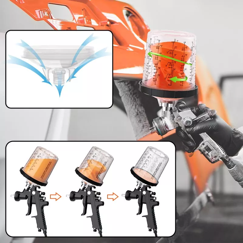 El sistema de copa de pintura desechable de 850 ml contiene 28.5 fl oz (850 ml) de pintura, es ideal para reparaciones de 4 paneles o menos material, incluido el lote de pelaje transparente grande. Este rango se ha desarrollado para mejorar la eficiencia de trabajo y la calidad de spray para cumplir con las expectativas de cada pintor. La pintura se puede mezclar directamente en la taza de pulverización, y solo se requiere una limpieza mínima después de cada uso. Si desea una taza de pistola de pulverización desechable al por mayor, contáctenos para obtener muestras gratuitas para las pruebas.