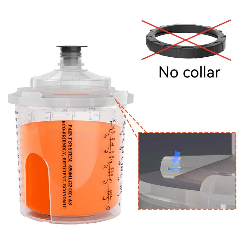 El collar, que forma una conexión estrecha entre la copa y la tapa, ha sido durante mucho tiempo un componente crucial en los sistemas de copa de pulverización desechables. Durante las sesiones de pintura ocupadas, los pintores a menudo pierden o dañan el collar, evitando que la taza de pulverización desechable funcione correctamente, creando desafíos significativos.