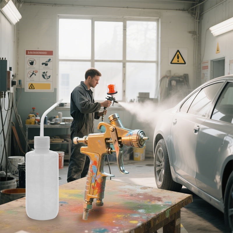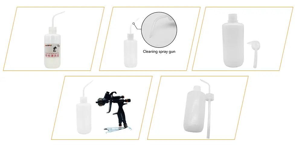 El lavado de pistola de spray de Ayspat es una herramienta eficiente de limpieza de pistola en aerosol con un excelente efecto de limpieza. Puede enjuagar rápidamente la pintura restante en la pistola de pulverización, lo que puede proteger mejor las partes de precisión dentro de la pistola de pulverización. La olla de lavado de pistola de pulverización es fácil de operar, y la intensidad y la dirección del flujo de líquido se pueden controlar con precisión apretando el cuerpo de la botella. Después de la operación de pintura, use la olla de lavado de pistola para cargar el solvente para al enjuagar las manchas de las tuberías complejas dentro de la pistola de pulverización, lo que puede mantener la pistola de pulverización y extender significativamente su vida útil. La botella de lavado de pistola está hecha de material PP suave y liviano, que es resistente a la corrosión por solventes como la acetona y el tolueno. Es una solución ideal para el mantenimiento de su pistola de pulverización.